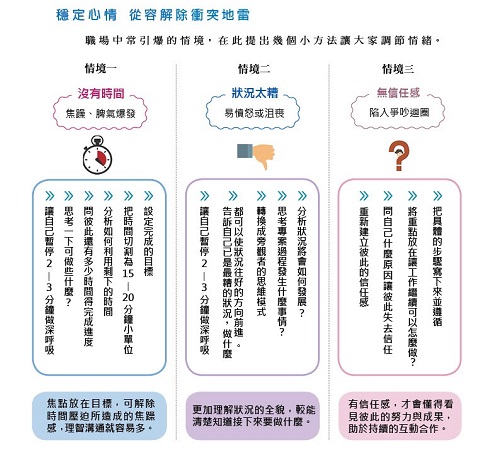 我彙整幾個職場中常引爆的情境供大家參考,並提出幾個小方法讓大家調節情緒。