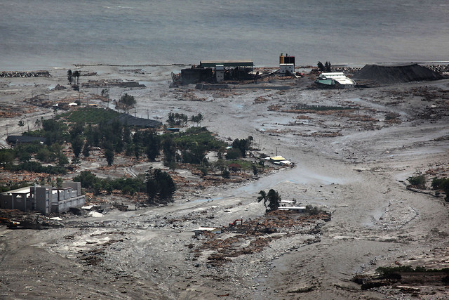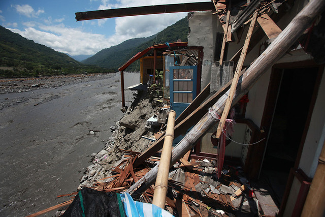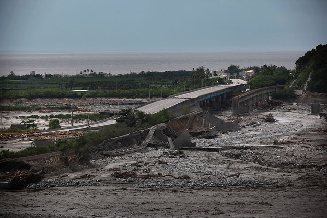 透過一位台東友人的協助,才能進入一些被管制的災區,一踏上受創嚴重的太麻里,就感到一陣煙硝瀰漫,路面斷裂,房屋許多都被掏空,挖土機正忙著挖開河床泥沙,路上都是軍人和媒體匆忙穿梭其間,這裡曾經是台灣美麗的日出故鄉。
