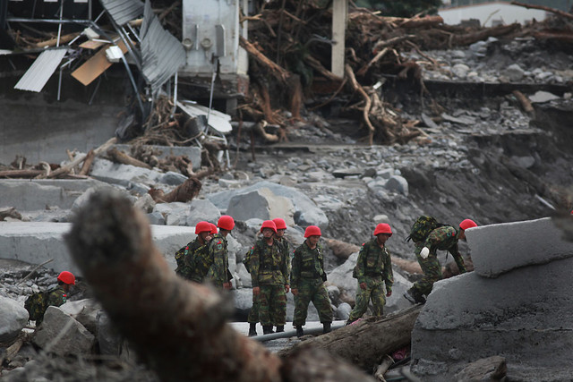 在飛回台北的途中,看著窗外漆黑的大地,這幾天來我看見人的脆弱,也見到土地的反撲,聽見它憤怒的咆哮,短短 48小時間台灣從嚴重乾旱,變成被暴雨洪水狂襲的地方,這次災害的面積非常遼闊,南部的山區都壟罩其中,多半是發生在人口密度較低的部落,如果這颱風北偏300公里,讓3000公厘雨水,直接落在人口密度最高的台北盆地,那將會是怎樣的結果?恐怕新竹以北都會是重大災區,台北人擁有最多的資源,不能因為這次的僥倖,就繼續的麻木下去。