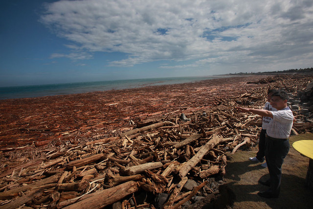 我問了在地人,為何會有這些漂流木,他們說很多都是多年來山老鼠所為,不法人士在山上亂砍盜伐後,有些是一時之間沒法完全運出來,有些則是被遺忘了,這次的一場大雨就把這些藏在山中的盜伐木,全部清掃到大海來了,他們在地人也是一輩子都沒見過這樣的奇景。