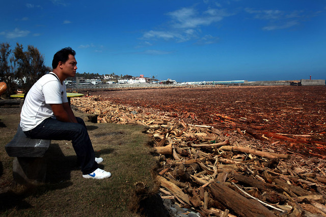 走到富岡旁邊的海岸,景觀更是駭人,海前方兩百公尺的海面上,滿是漂流木,朝海岸線綿延下去,深刻的感覺到這土地病了,而且已到了病入膏肓的地步,死亡樹木量之多,根本無法估算,簡直就是樹木的墳場。