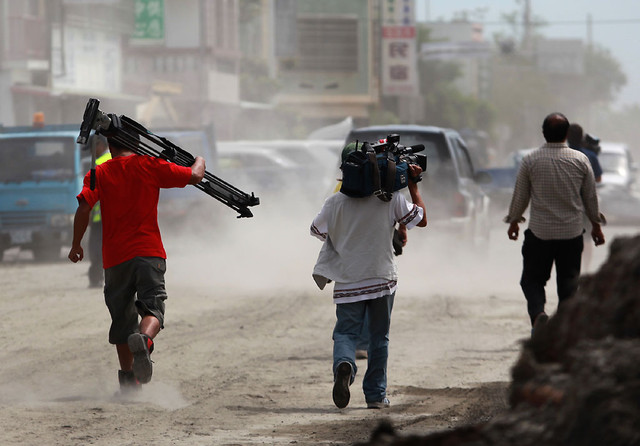 正在拍攝河床的畫面時,突然被某電視台記者拍了一下,「老哥:不是在這裡,屍體是在前面!」他的話才剛說完,就看到一些媒體記者往發現屍體的方向快步跑去。若是以前,我一定也會快步跟上,但離開媒體久了,才突然驚覺此幕的荒謬,對那些苦後已久的媒體,死傷才是新聞的焦點,但卻是建立在民眾的苦難之中。